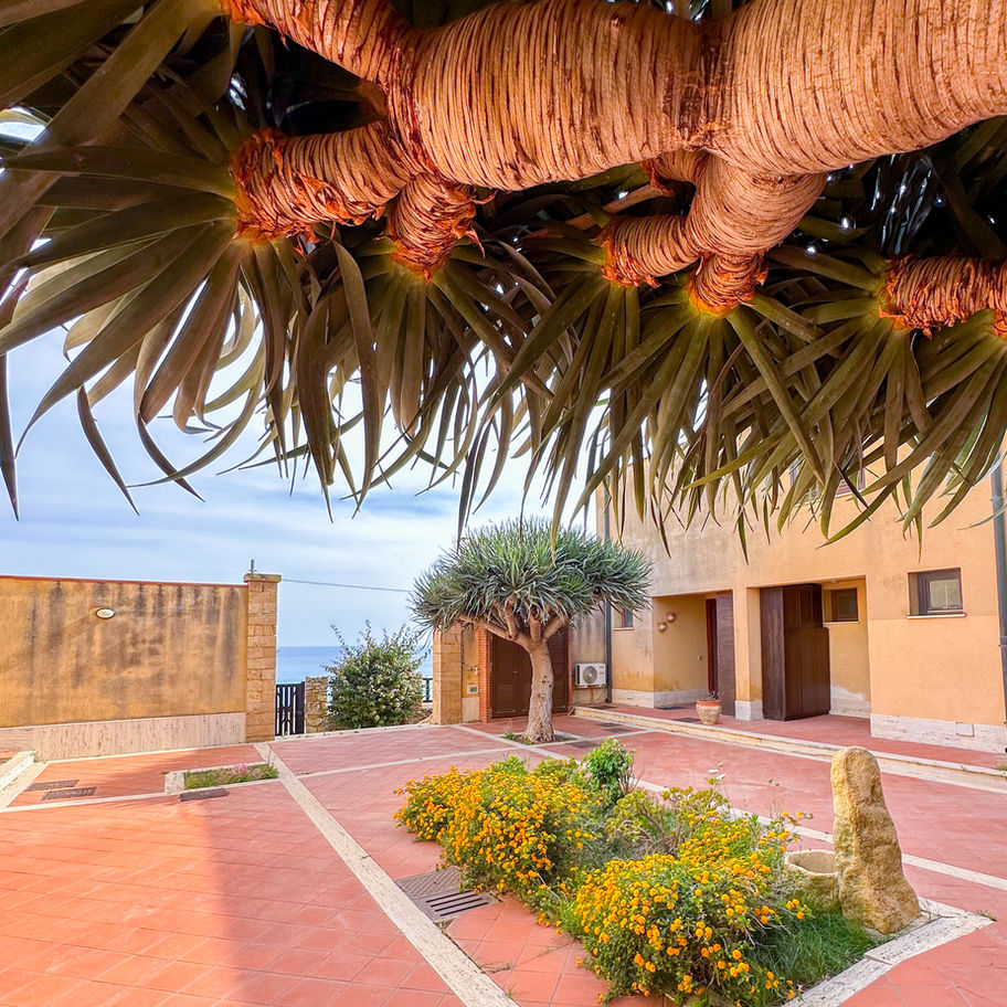 Gli spazi esterni sono arredati con comode sedute e zone d’ombra, per regalarvi un soggiorno all’insegna del comfort e della bellezza siciliana.